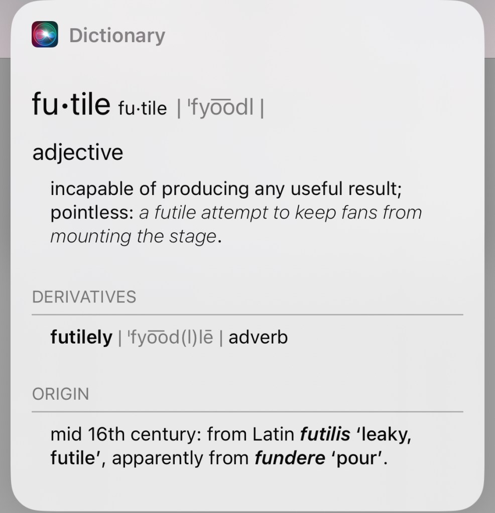 Incapable of producing any useful result. Pointless. – is how my phone’s default Siri dictionary phrased it.
